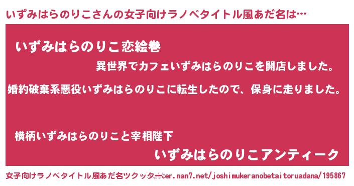 | 男性向けラノベタイトル風あだ名 | 『イズミハラノリコスレイヤー』 |