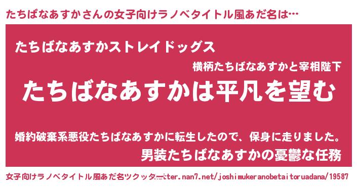 | 意味不明あだ名 | 『とにかく怪しいたちばなあすか』 |