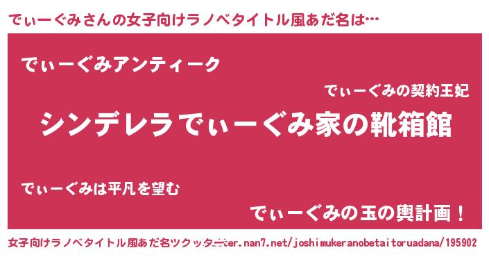 | 恥ずかしいあだ名 | 『ディーグミデラックス』『でぃちん』 |