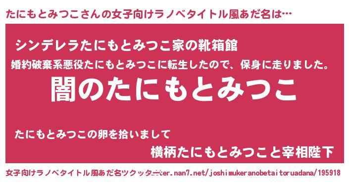 | 意味不明あだ名 | 『自称たにもとみつこ』 |