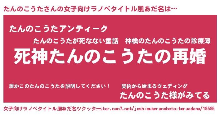 | 男性向けラノベタイトル風あだ名 | 『ノーゲーム・ノータンノコウタ』 |