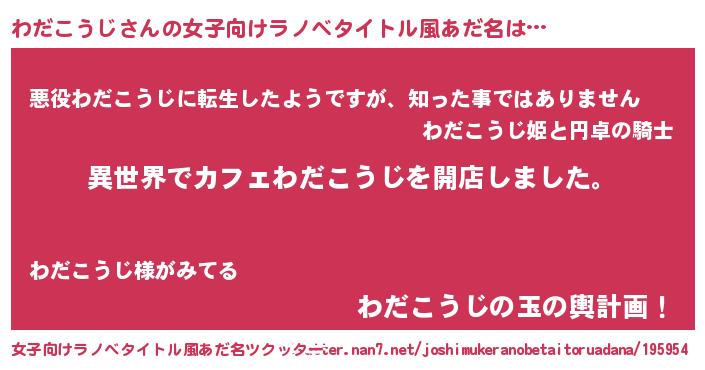| ヒーロー風カッコイイあだ名 | 『ネオワダコウジ』『仮面ワダダー』 |
