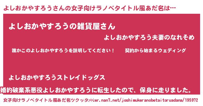 | 胡散臭い通販商品みたいなあだ名 | 『億万長者になれる霊験あらたかなお札…その名も「よしおかやすろう」』 |