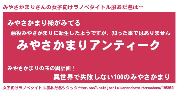 | 意味不明あだ名 | 『自称みやさかまり』 |