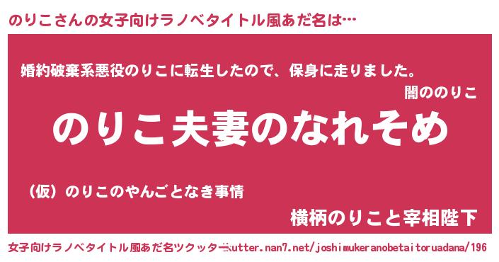 | 男性向けラノベタイトル風あだ名 | 『おまえをオタクにしてやるから、俺をのりこにしてくれ! 』 |