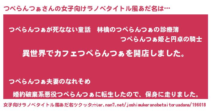 | 男性向けラノベタイトル風あだ名 | 『誰もが恐れるあのつぺらんつぁが、ぼくの専属メイドになるようです。』 |