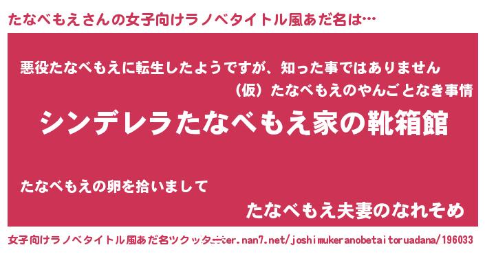 | 意味不明あだ名 | 『住所不定無職たなべもえ(43歳)』 |