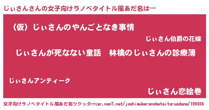 | 意味不明あだ名 | 『住所不定無職じぃさん(8歳)』 |