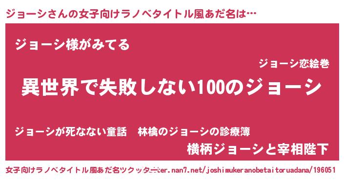| 男性向けラノベタイトル風あだ名 | 『ジョーシという概念が存在しない退屈な世界 』 |