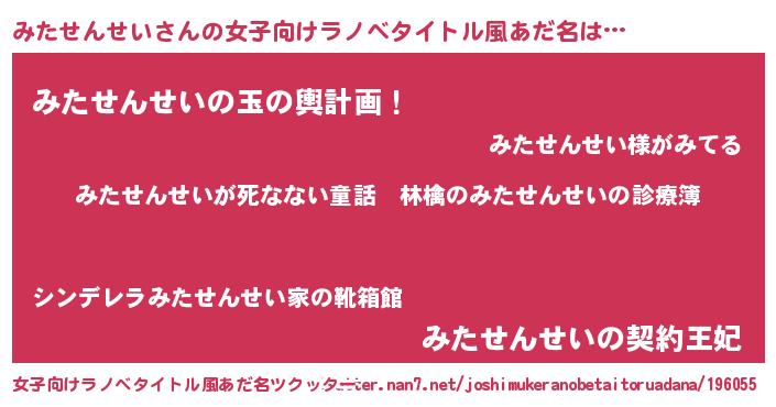 | 男性向けラノベタイトル風あだ名 | 『魔弾の王とみたせんせい』 |