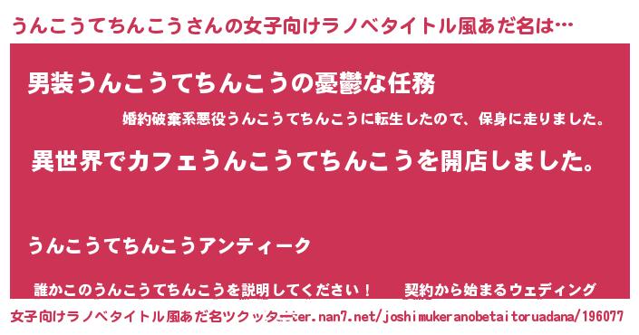 | 男性向けラノベタイトル風あだ名 | 『誰もが恐れるあのうんこうてちんこうが、ぼくの専属メイドになるようです。』 |