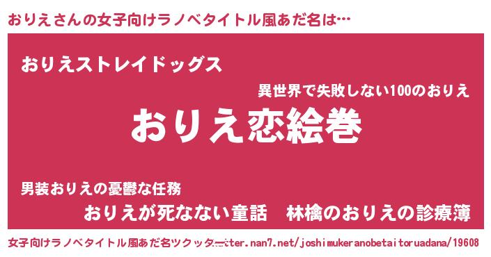 | 意味不明あだ名 | 『眠気覚ましガムおりえ味』『自称おりえ』 |