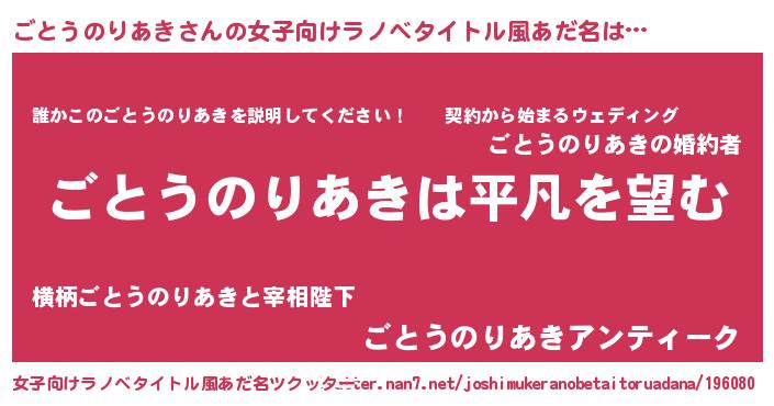| 男性向けラノベタイトル風あだ名 | 『ダンジョンにごとうのりあきを求めるのは間違っているだろうか』 |