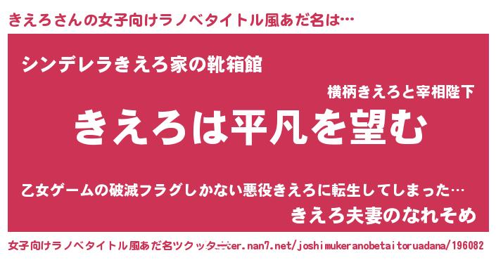 | ヒーロー風カッコイイあだ名 | 『魔戒騎士キエ』『正義の使者きえろ』 |