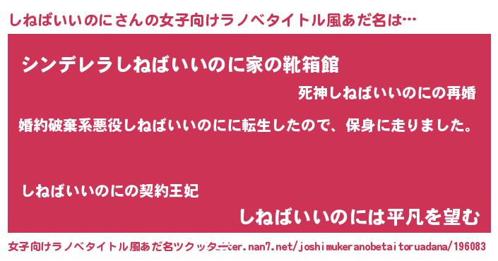 | 男性向けラノベタイトル風あだ名 | 『シネバイイノニスレイヤー』 |
