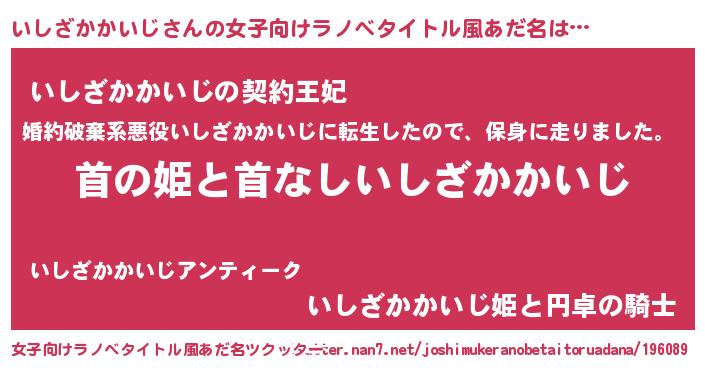 | 男性向けラノベタイトル風あだ名 | 『はたらくいしざかかいじさま!』 |