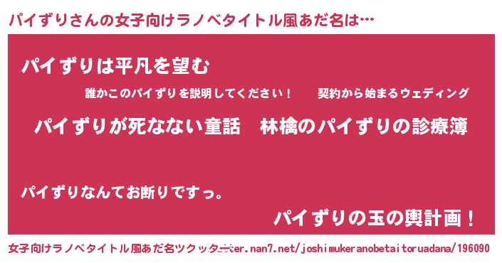 | 意味不明あだ名 | 『住所不定無職パイずり(50歳)』 |
