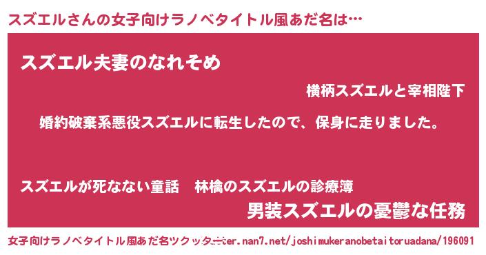 男性向けラノベタイトル風あだ名 | 『スズエルスレイヤー』 |