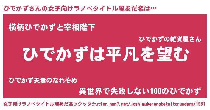 | 男性向けラノベタイトル風あだ名 | 『ダンジョンにひでかずを求めるのは間違っているだろうか』 |