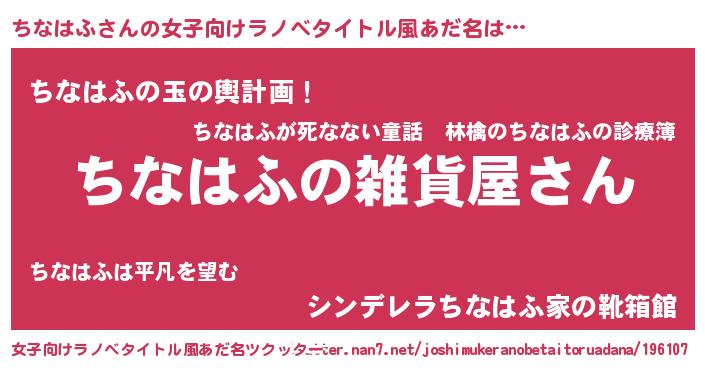 | 男性向けラノベタイトル風あだ名 | 『やはりちなはふの青春ラブコメはまちがっている 』 |