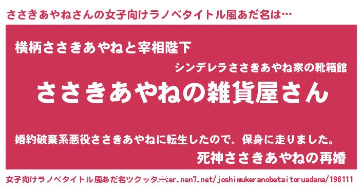 | 男性向けラノベタイトル風あだ名 | 『やはりささきあやねの青春ラブコメはまちがっている 』 |