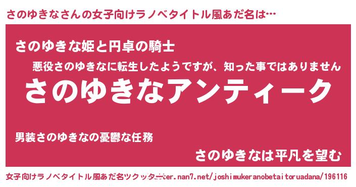 | 男性向けラノベタイトル風あだ名 | 『魔法科高校のさのゆきな』 |