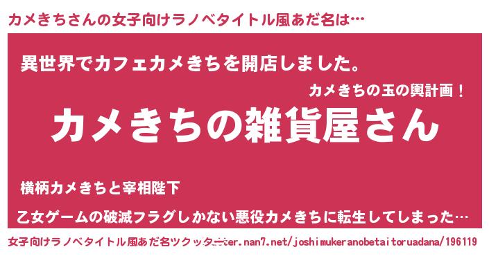 | 意味不明あだ名 | 『カメきちフォーエバー』 |