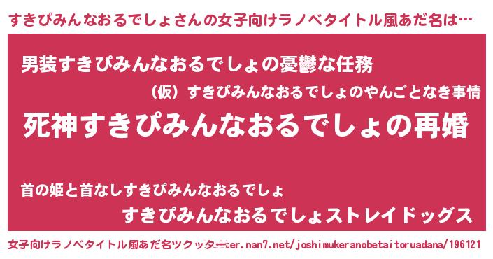 | ヒーロー風カッコイイあだ名 | 『慈愛の使者すきぴみんなおるでしょ』 |
