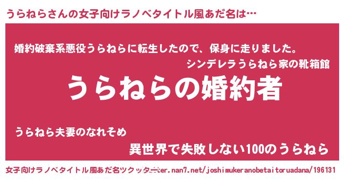 | 男性向けラノベタイトル風あだ名 | 『うちの娘の為ならば、俺はもしかしたらうらねらも倒せるかもしれない。』 |