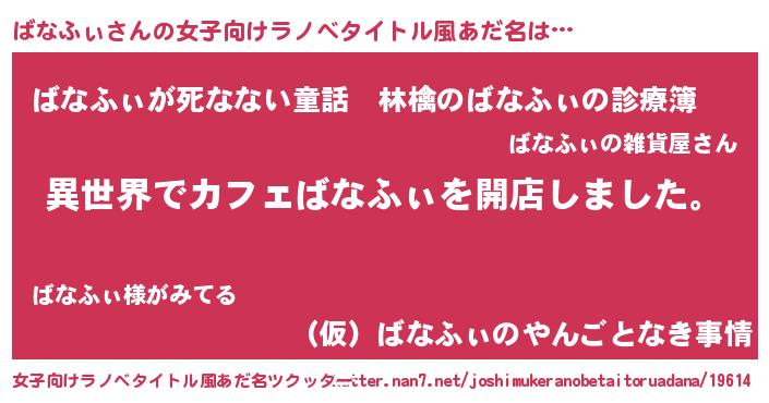 | ヘコむあだ名 | 『ばなふぃ(爆)』『ばなにー』『豆乳』 |
