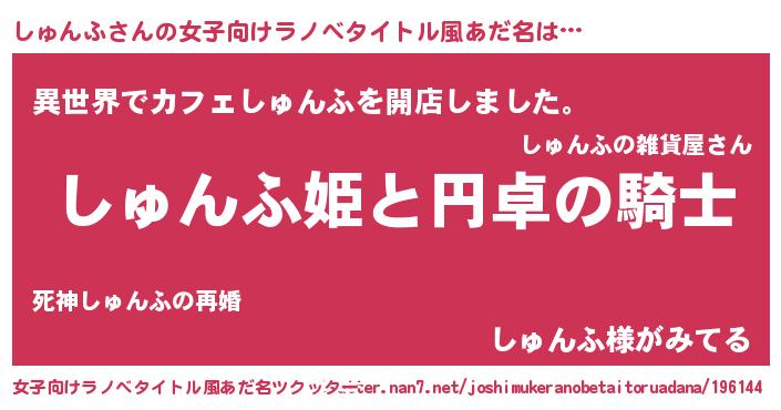 | 男性向けラノベタイトル風あだ名 | 『シュンフアートオンライン』 |