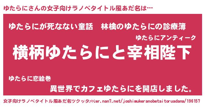 | 意味不明あだ名 | 『住所不定無職ゆたらに(7歳)』 |