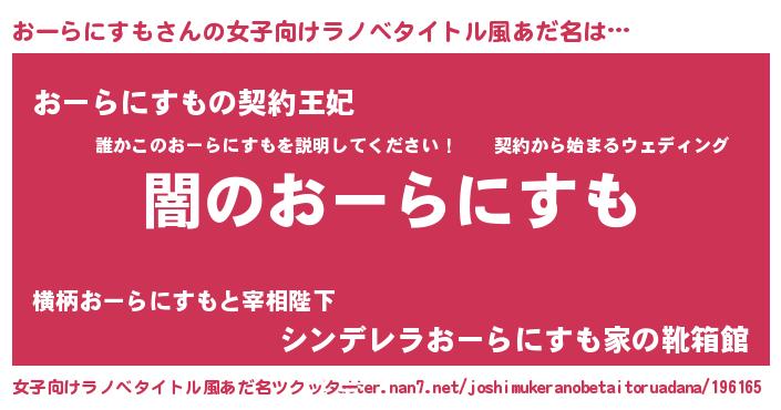 | 意味不明あだ名 | 『自称おーらにすも』 |