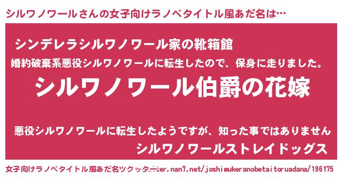 | ヒーロー風カッコイイあだ名 | 『ウルトラシルワノワールマン』 |