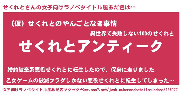 | 肩書あだ名 | 『せくれと閣下』『せくれと御曹司』 |