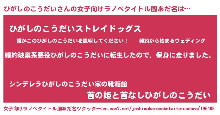 | 男性向けラノベタイトル風あだ名 | 『ヒガシノコウダイスレイヤー』 |