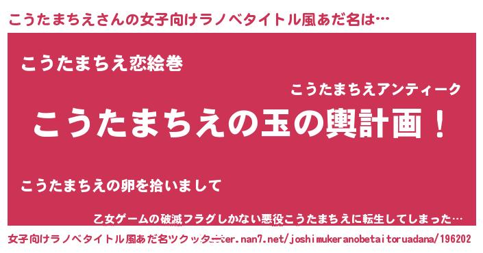 | 肩書あだ名 | 『こうたまちえ中将』『こうたまちえ助手』 |