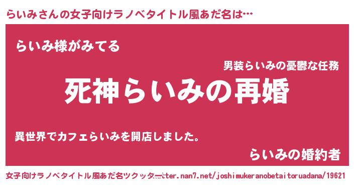 | ヒーロー風カッコイイあだ名 | 『慈愛の使者らいみ』『炎刃騎士ライ』 |