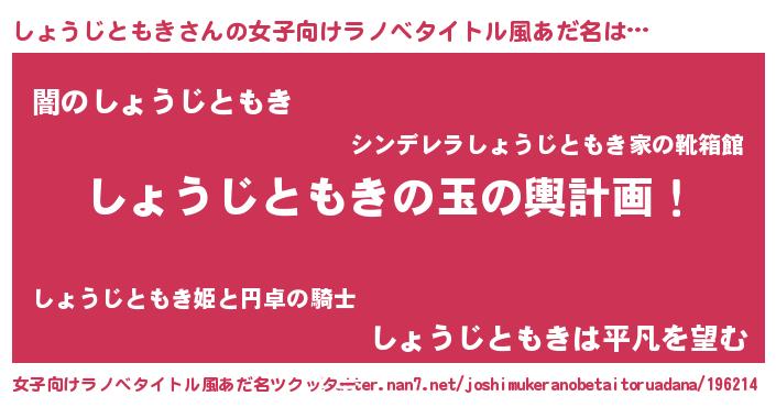 | 男性向けラノベタイトル風あだ名 | 『転生したらしょうじともきだった件』 |