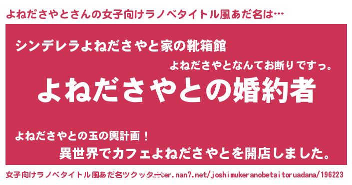| 肩書あだ名 | 『よねださやと国家主席』 |