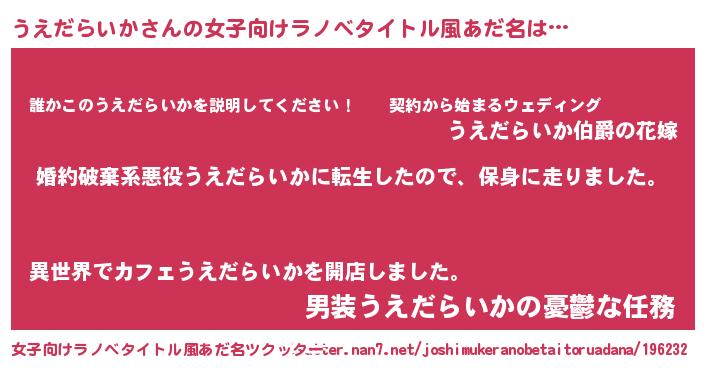 | 胡散臭い通販商品みたいなあだ名 | 『必ず成功するブレスレット…その名も「うえだらいか」』 |