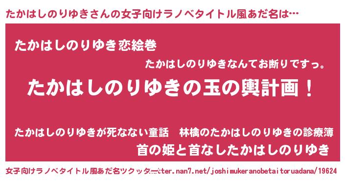 | ヘコむあだ名 | 『たかはしのりゆき(笑)』『たかっ子』 |