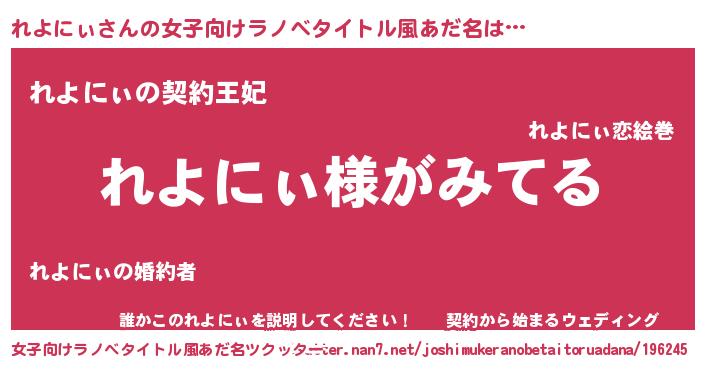 | 男性向けラノベタイトル風あだ名 | 『れよにぃの嫁は女の子じゃないと思った?』 |