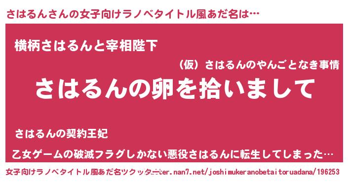 | 男性向けラノベタイトル風あだ名 | 『さはるんの嫁は女の子じゃないと思った?』 |