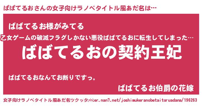 | 胡散臭い通販商品みたいなあだ名 | 『来世でも幸せになれる健康食品…その名も「ばばてるお」』 |