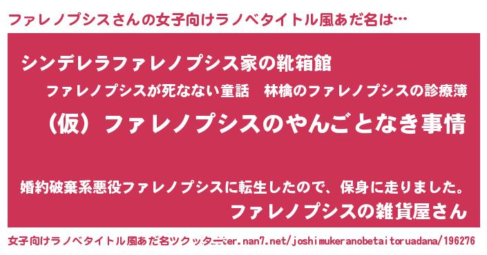 | 男性向けラノベタイトル風あだ名 | 『ファレノプシスの憂鬱』 |
