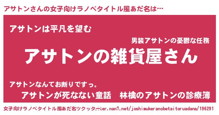 | 男性向けラノベタイトル風あだ名 | 『やはりアサトンの青春ラブコメはまちがっている 』 |