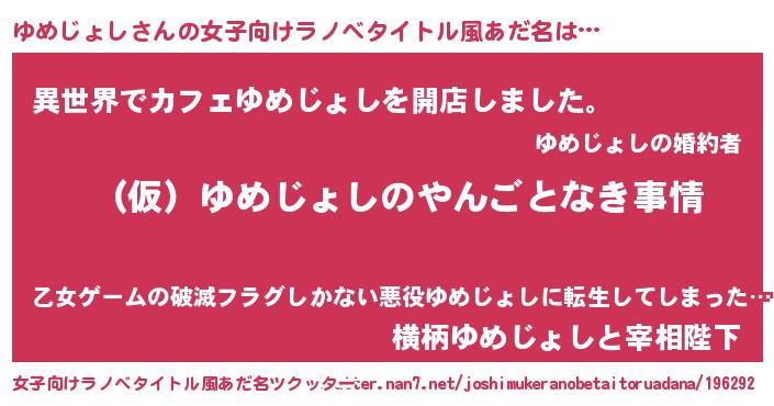 | 男性向けラノベタイトル風あだ名 | 『ゆめじょしの憂鬱』 |