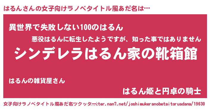 | 胡散臭い通販商品みたいなあだ名 | 『来世でも幸せになれる健康食品…その名も「はるん」』 |