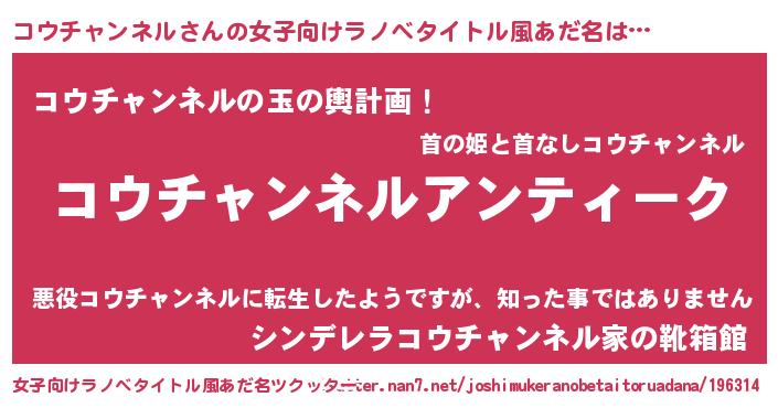 | 意味不明あだ名 | 『自称コウチャンネル』 |